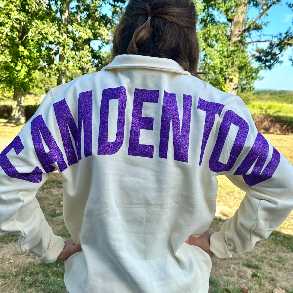 Rep your school in comfy, classic style with this custom quarter zip. Bold varsity-style lettering across the back gives instant spirit without being bulky — perfect for game day, class, or everyday wear. Soft midweight fabric and a relaxed unisex fit make this an easy go-to layer. Personalize with your school name and color — we’ll print it just how you want.