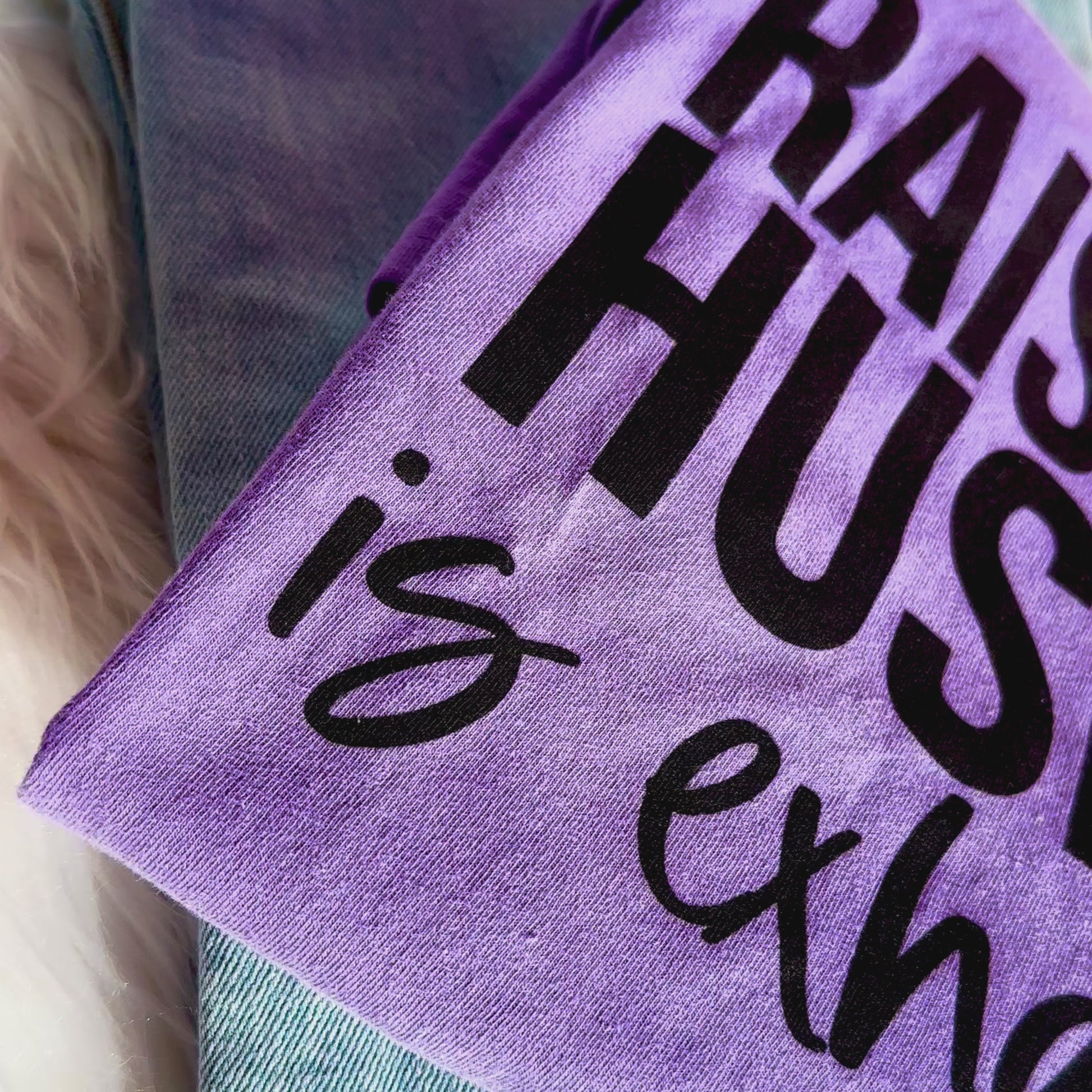 Add some humor to your everyday wardrobe with this bold and relatable tee! Our “Raising My Husband is Exhausting” shirt is perfect for wives who love to laugh and keep it real. Made from soft, breathable fabric, this unisex shirt is designed for comfort and style whether you’re lounging at home, running errands, or heading out with friends.