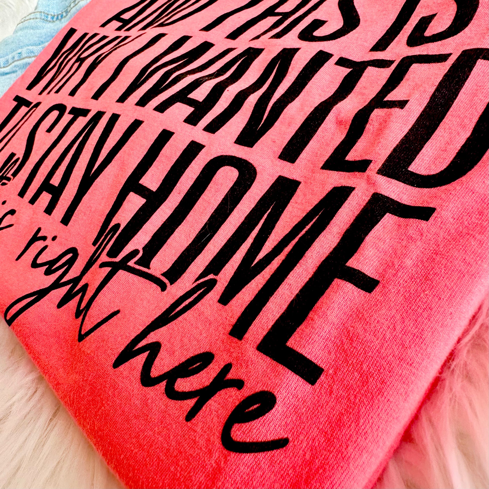 Our “And This Is Why I Wanted to Stay Home” graphic tee is the perfect blend of sarcasm and style. Printed on a super-soft crewneck tee, this coral pink shirt is for anyone who’d rather be on the couch with snacks than out dealing with... well, all this.